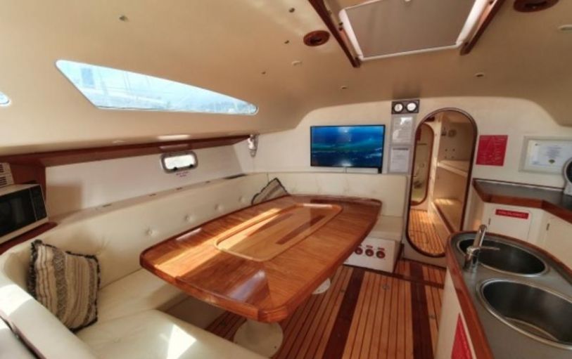 No matter the weather, Eureka ensures comfort for all. On rainy tropical nights, ample deck space and a waterproof cover keep everyone dry. And for those seeking a cozy retreat, the air-conditioned saloon boasts a rare luxury: a TV with Netflix. With Eureka, every moment promises adventure, relaxation, and the ultimate in sailing comfort.