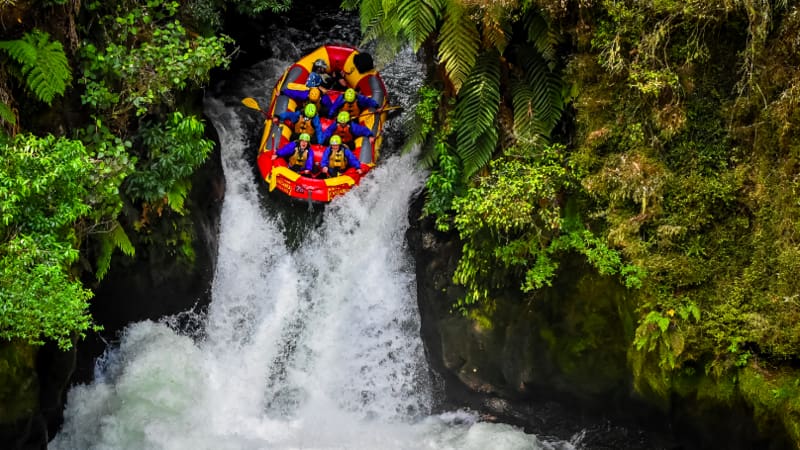 Grip the sides of a raft as you launch down a 7-metre waterfall whilst White Water Rafting in the Kaituna River